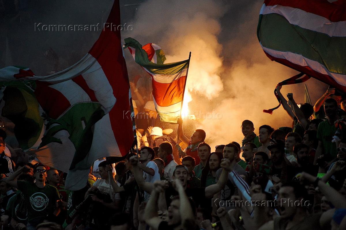Кубок России по футболу 2016/2017. Финал. Матч между командами "Урал" (Екатеринбург) - "Локомотив" (Москва) на стадионе "Фишт". Болельщики на трибунах после матча.