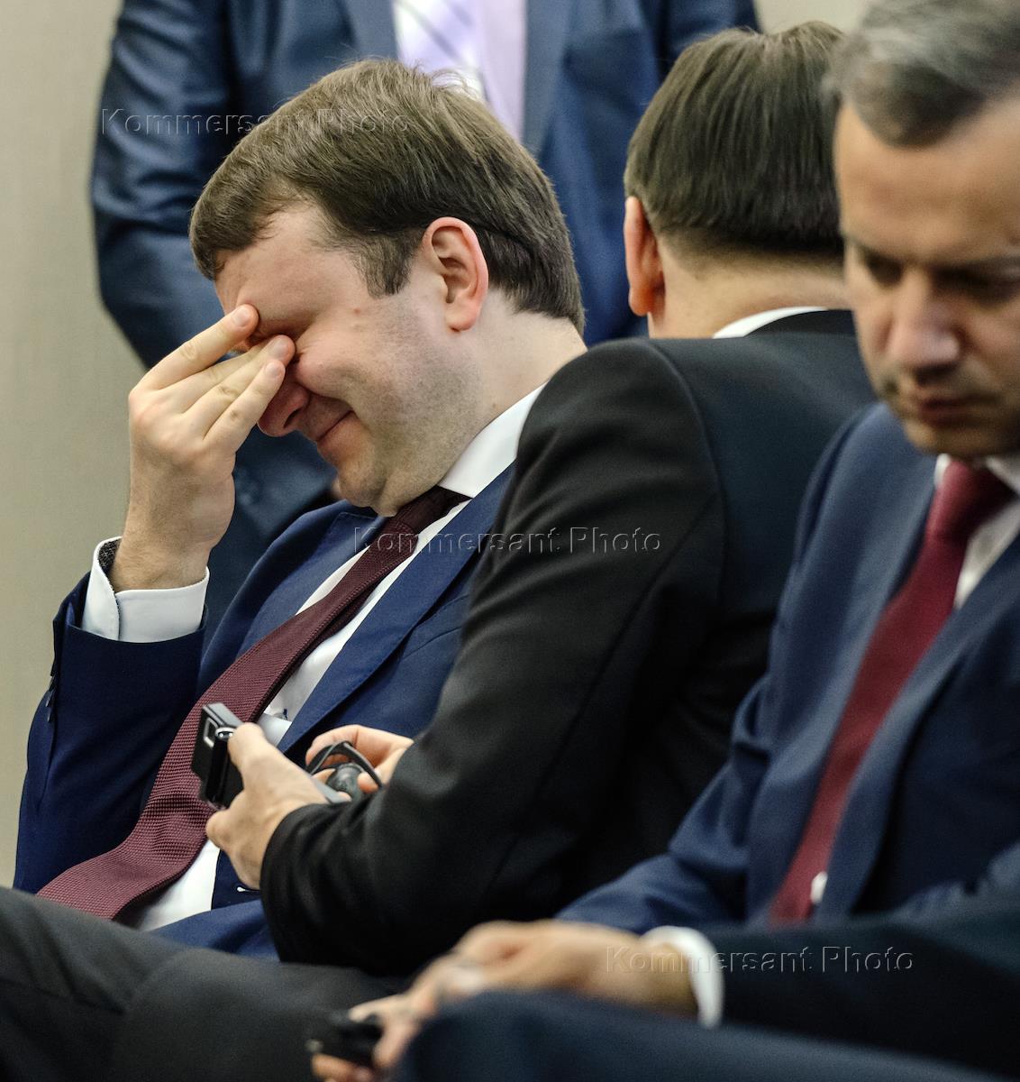 Defence Minister Sergei Shoigu reacts (L) and Economic development Minister Maxim Oreshkin (second left) are seen during a news conference following Russian President Vladimir Putin's talks with Turkish President Recep Tayyip Erdogan at Putin's Sochi residence.