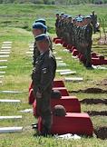 Всероссийская патриотическая акция "Вахта памяти" по поиску и захоронению пропавших без вести во время Великой Отечественной войны солдат в Армянске. Церемония перезахоронения останков 40 советских воинов у поклонного креста на Перекопском валу.