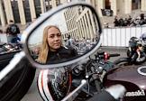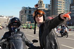 Мотопарад в поддержку развития мотокультуры и безопасности на дорогах в рамках фестиваля "Москва - город для мотоциклистов" прошел по Садовому кольцу. Мотоциклисты во время парада. Девушка-мотоциклист перед началом парада.