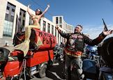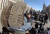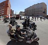 Мотопарад в поддержку развития мотокультуры и безопасности на дорогах в рамках фестиваля "Москва - город для мотоциклистов" прошел по Садовому кольцу. Эмблема и флаг мотоклуба "Падонки Масква".
