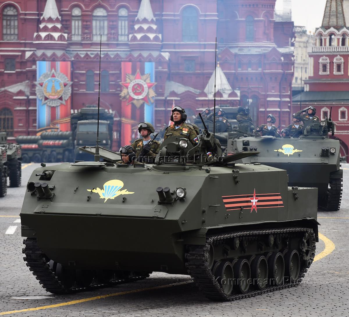 Военный парад, посвященный 72-й годовщине Победы в Великой Отечественной войне, прошел на Красной площади. Военнослужащие на бронетранспортере БТР-МД "Ракушка" во время парада.