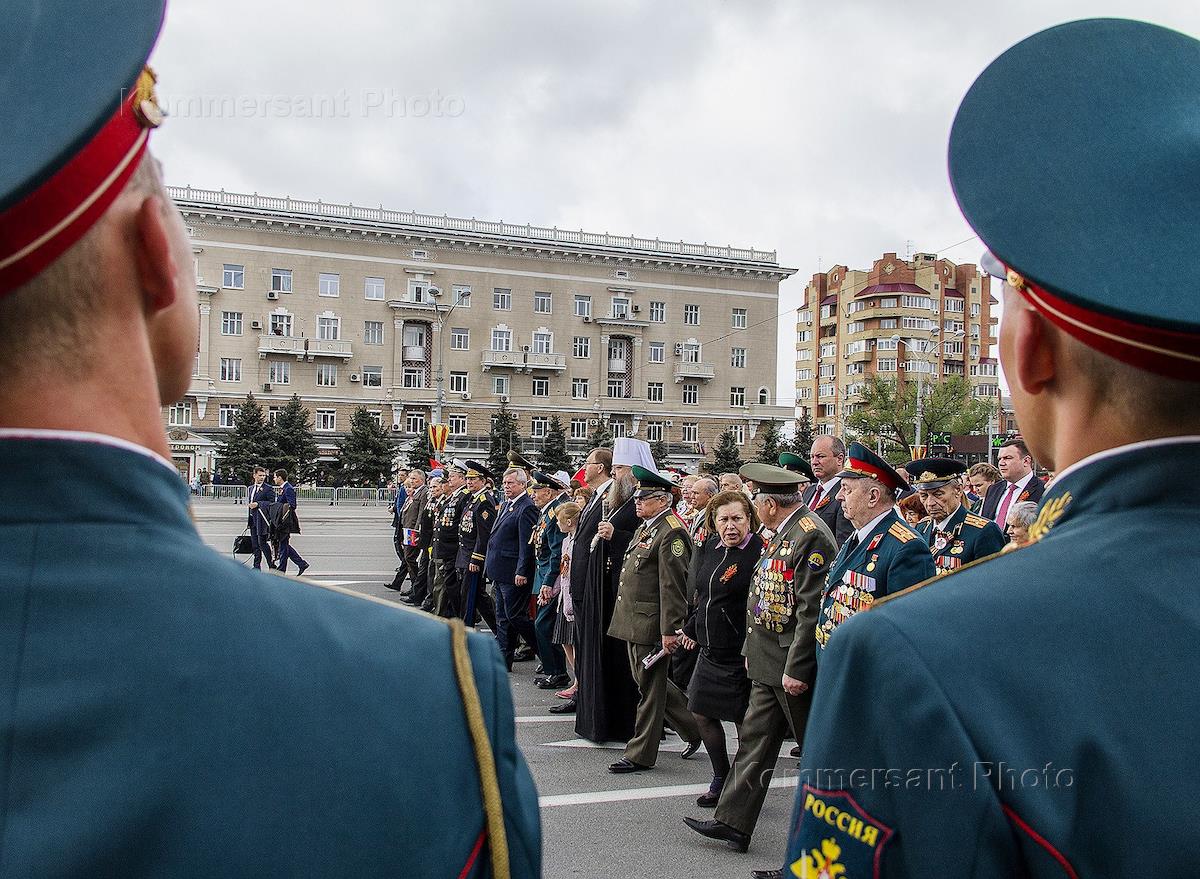 Мероприятия, посвященные 72-й годовщине Дня Победы в Великой Отечественной войне, в Ростове-на-Дону. Зрители во время военного парада на Театральной площади.