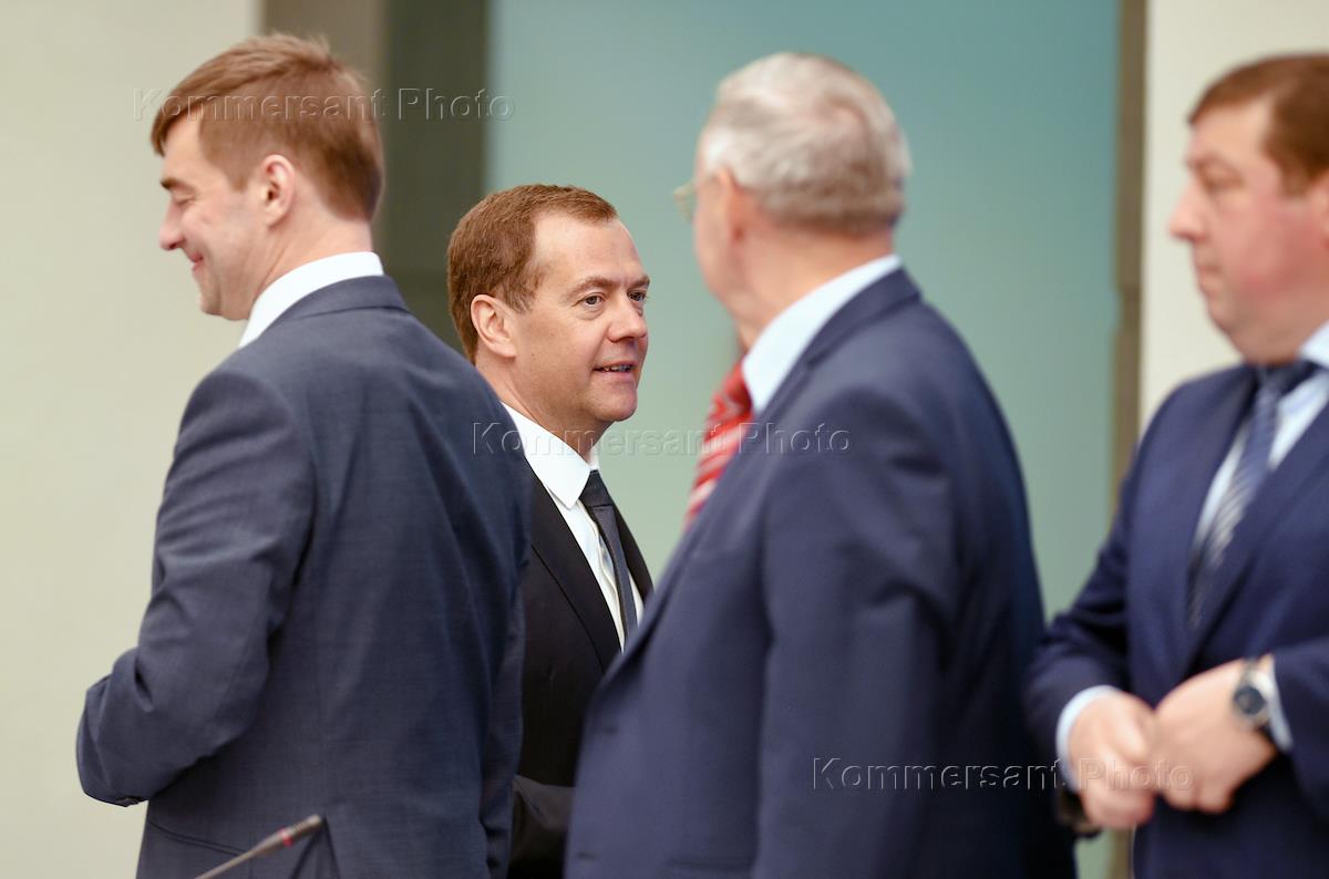 Заседание программной комиссии партии "Единая Россия", посвященное контролю за реализацией предвыборной программы партии на выборах депутатов Государственной думы России VII созыва. Председатель правительства России, председатель партии "Единая Россия" Дмитрий Медведев (третий справа) во время заседания.