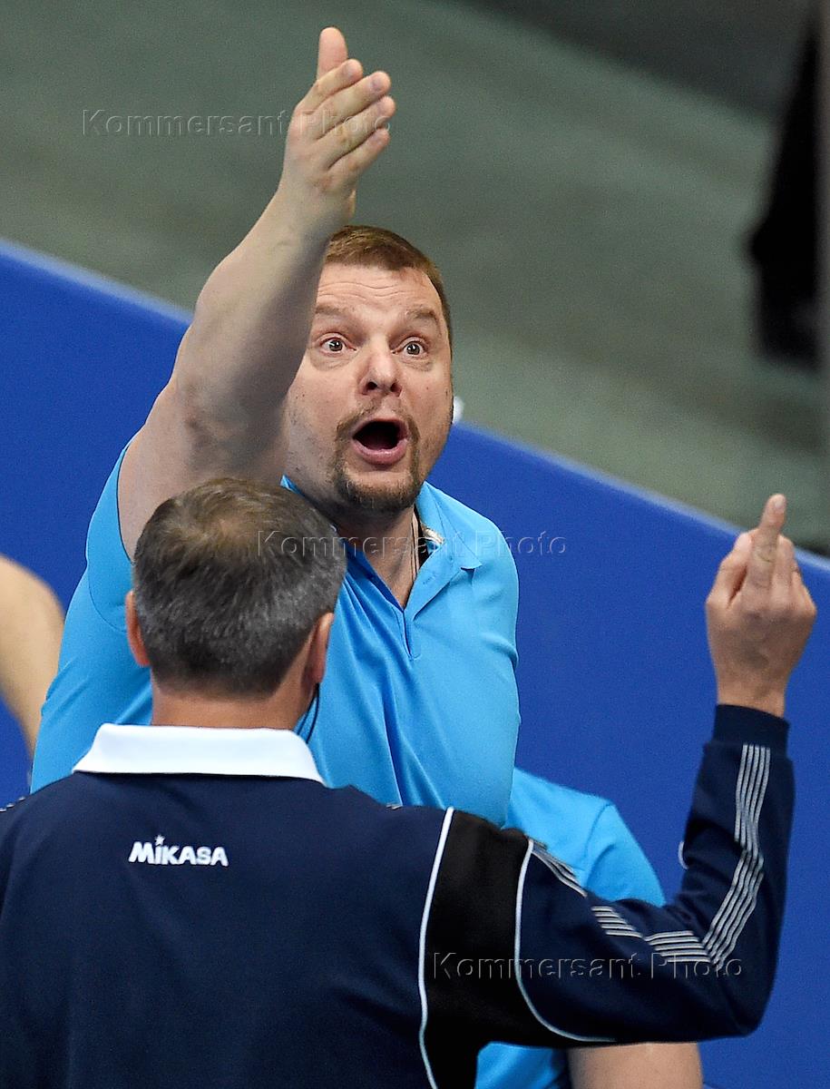 Чемпионат России по волейболу "Финал шести". Полуфинал. Матч между командами "Зенит-Казань" (Казань) - "Белогорье" (Белгород) прошел во дворце спорта "Динамо". Главный тренер команды "Зенит-Казань" Владимир Алекно во время матча.