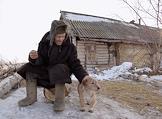 Жители аварийных домов в Алтайском крае. Дед с сигаретой на улице с собакой.