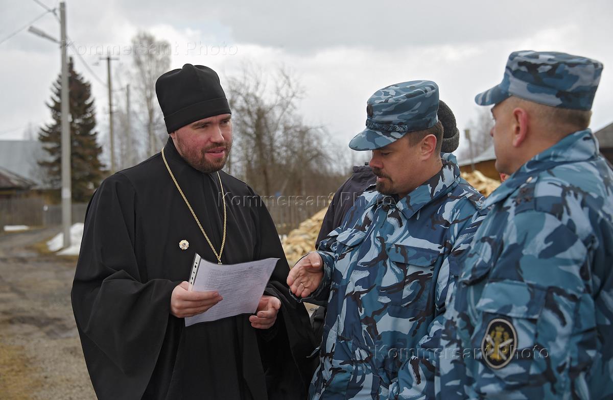 Виды деревни Слобода Сокольского района Вологодской области. Деревянная скульптура на месте разрушенного Спасо-Преображенского Рабангского монастыря, основанного преподобным Филиппом Рабангским.