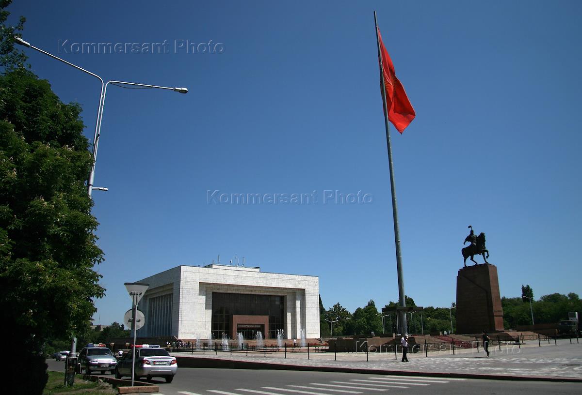 Виды Бишкека. Памятник герою национального эпоса Манас на площади Ала-Тоо.