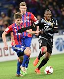 РОСГОССТРАХ Чемпионат России по футболу 2016/2017. 28-й тур. Матч между командами "ЦСКА" (Москва) - "Арсенал" (Тула) на стадионе "Арена ЦСКА". Слева направо: игроки команды ЦСКА Федор Чалов и Понтус Вернблум и игрок команды "Арсенал" Стоппила Сунзу во время матча.