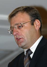 Председатель Правления Собинбанка Сергей Кириленко на церемонии подписания официальных договоров о сотрудничестве между General Motors - АВТОВАЗ - Собинбанком и Альфа-Банком. Подписание прошло в отеле "Рэдиссон-Славянская".