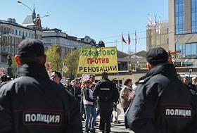 Председатель Федерального политического комитета партии "Яблоко" Григорий Явлинский (справа) на митинге против закона о "реновации пятиэтажек".