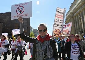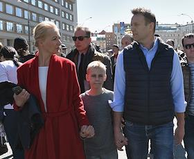 Оппозиционер Алексей Навальный (справа) с женой Юлией и сыном Захаром на митинге против закона о "реновации пятиэтажек".