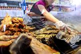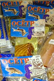 Жанровая фотография. Витрина магазина с копченой рыбой.