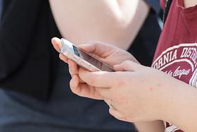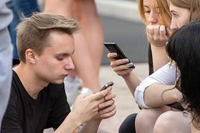 Жанровая фотография. Молодые люди читают с экрана смартфонов.