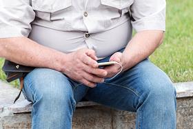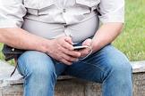 Жанровая фотография. Мужчина читает с экрана смартфона.