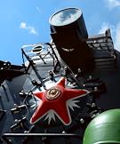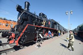 "Паровозная прогулка" на ретропоезде, организованная "РЖД-тур", от Рижского вокала до платформы Красный Балтиец. Красная металлическая пятиконечная звезда на корпусе паровоза.