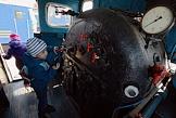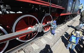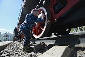 "Паровозная прогулка" на ретропоезде, организованная "РЖД-тур", от Рижского вокала до платформы Красный Балтиец. Мальчик во время осмотра музейных экспонатов.