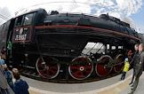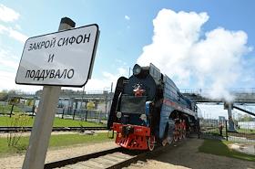 "Паровозная прогулка" на ретропоезде, организованная "РЖД-тур", от Рижского вокала до платформы Красный Балтиец. Паровоз вблизи таблички "Закрой сифон и поддувало".