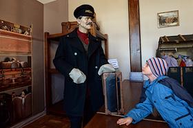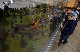"Паровозная прогулка" на ретропоезде, организованная "РЖД-тур", от Рижского вокала до платформы Красный Балтиец. Мальчик во время осмотра макета железной дороги.