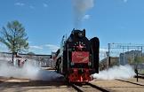 "Паровозная прогулка" на ретропоезде, организованная "РЖД-тур", от Рижского вокала до платформы Красный Балтиец. Паровоз во время отхода от перрона.