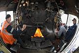 "Паровозная прогулка" на ретропоезде, организованная "РЖД-тур", от Рижского вокала до платформы Красный Балтиец. Машинисты в кабине паровоза с топкой.