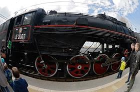 "Паровозная прогулка" на ретропоезде, организованная "РЖД-тур", от Рижского вокала до платформы Красный Балтиец. Металлическая надпись "Победа" на корпусе паровоза П-0001.