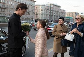 Российская премьера биографического фильма "Танцовщик" состоялась в кинотеатре "Пионер". Солист балета Московского академического Музыкального театра им. К.С. Станиславского и Вл.И. Немировича-Данченко Сергей Полунин (в центре) перед премьерой.