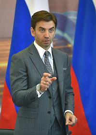 Рабочая поездка председателя правительства России Дмитрия Медведева в Санкт-Петербург. Слева направо: заместитель министра экономического развития России Евгений Елин, Первый заместитель руководителя аппарата правительства России Максим Акимов и министр сельского хозяйства России Александр Ткачев перед началом заседания Правительственной комиссии по импортозамещению.