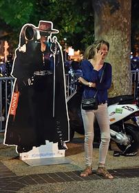 Виды Канн. Скульптуры мужчины и женщины на притротуарном газоне.