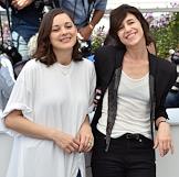 70-й Каннский международный кинофестиваль 2017 / Festival de Cannes 2017. Фотосессия съемочной группы фильма открытия "Призраки Исмаэля". Актрисы Марион Котийяр (слева) и Шарлотта Генсбур (справа) во время фотосессии.
