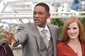 70-й Каннский международный кинофестиваль 2017. Члены жюри актер Уилл Смитт (слева) и актриса и продюсер Джесика Честейн (справа) во время фотосессии перед Дворцом фестивалей и конгрессов.