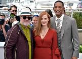 70-й Каннский международный кинофестиваль 2017. Слева направо: председатель жюри - режиссер Педро Альмадовар, члены жюри - американские актеры Джессика Честейн и Уилл Смит перед Дворцом фестивалей и конгрессов.