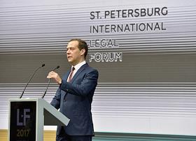 VII Петербургский Международный Юридический форум. Председатель правительства России Дмитрий Медведев на пленарном заседании "Право в глобальном контексте".