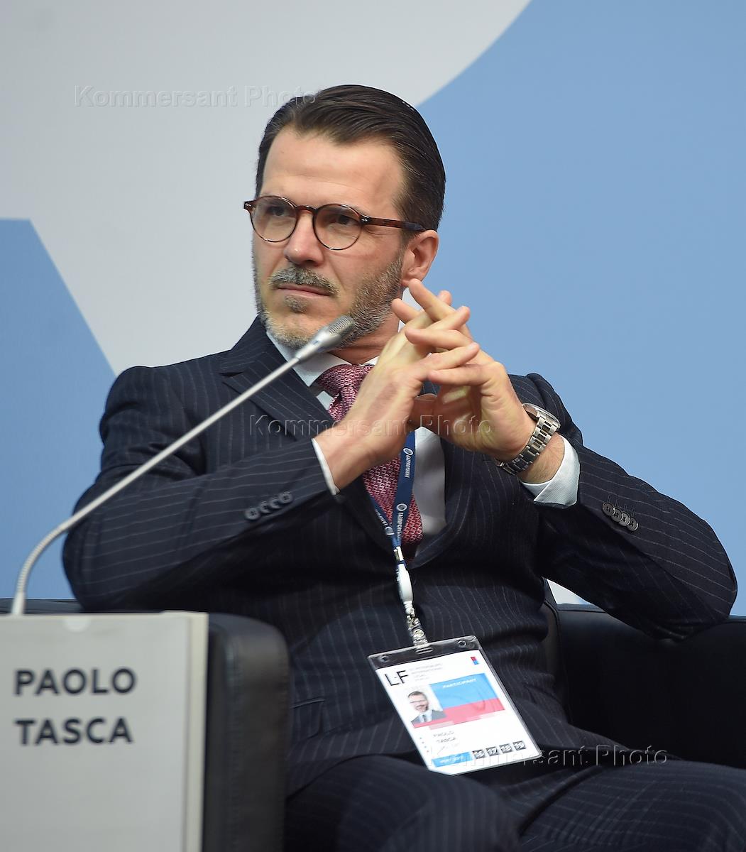 VII Петербургский Международный Юридический форум. Исполнительный директор Центра технологий блокчейн (CBT) Университетского колледжа Лондона Паоло Таска на пленарном заседании "Право в глобальном контексте" в Амфитеатре Главного штаба.
