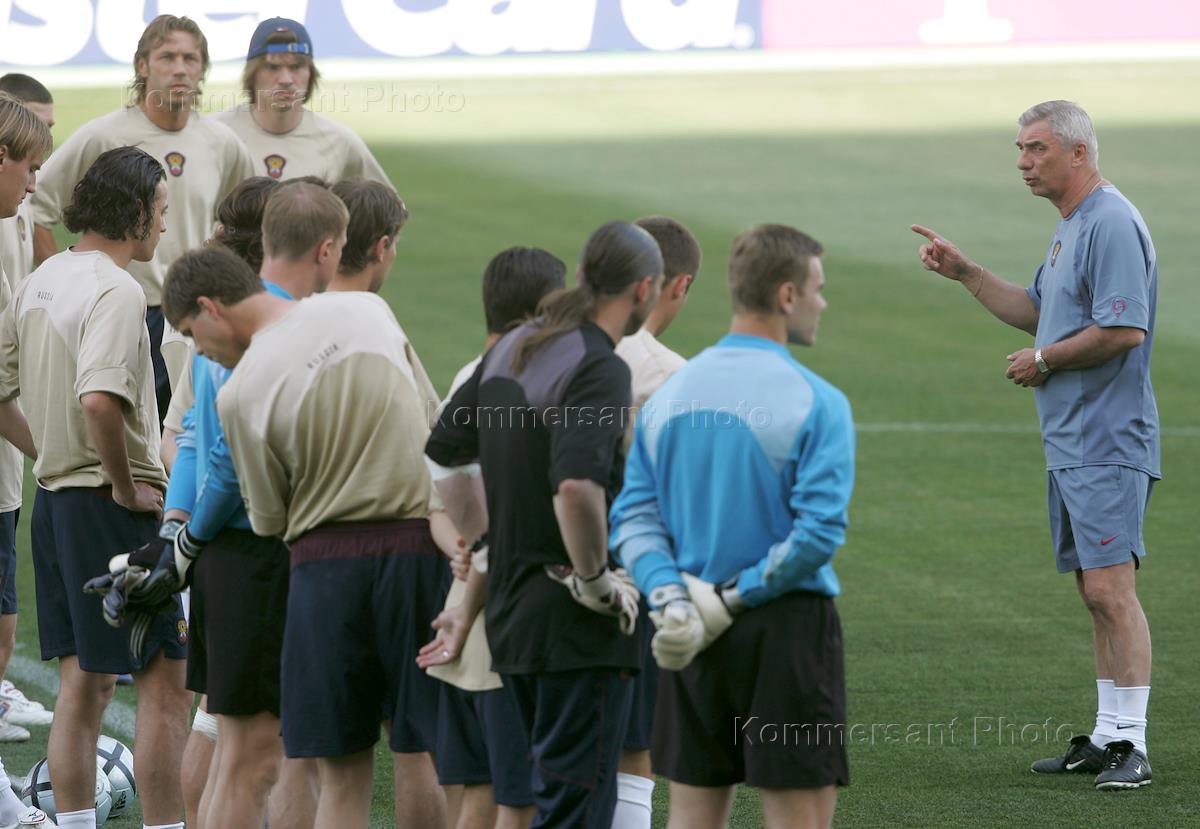 Чемпионат Европы по футболу "EURO - 2004". Главный тренер сборной России по футболу Георгий Ярцев на тренировке нашей команды.