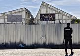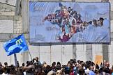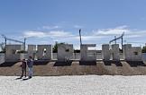 Мероприятия, посвященные Дню памяти жертв депортации крымских народов на месте строительства мемориального комплекса жертвам депортации на железнодорожной станции "Сирень". Надпись "Сюрень".