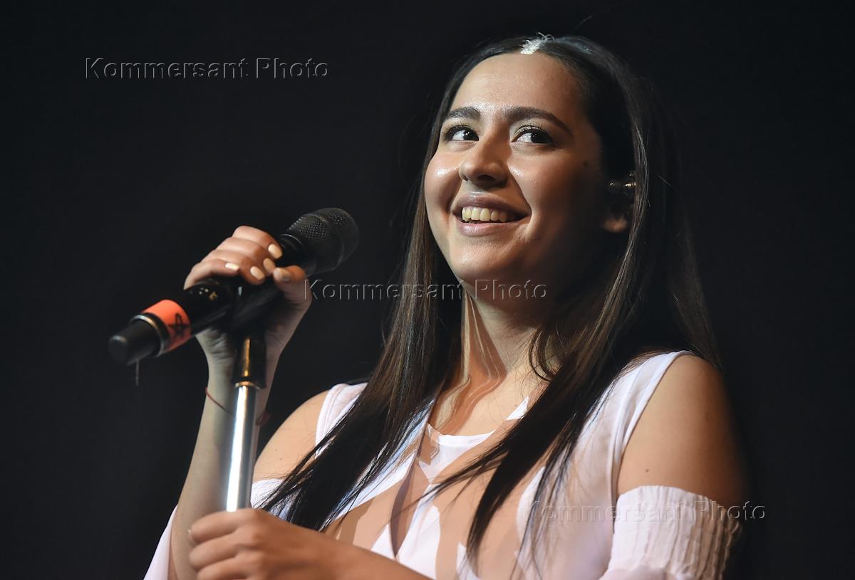 Российская певица Манижа Хамраева (Манижа) во время сольного концерта в Ледовом дворце.