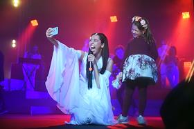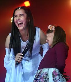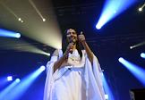 Российская певица Манижа Хамраева (Манижа) (слева) во время сольного концерта в Ледовом дворце.