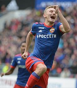 РОСГОССТРАХ Чемпионат России по футболу 2016/2017. 30-й тур. Матч между командами "ЦСКА" (Москва) -"Анжи" (Махачкала) на стадионе "Арена ЦСКА". Игрок команды ЦСКА Федор Чалов во время матча.