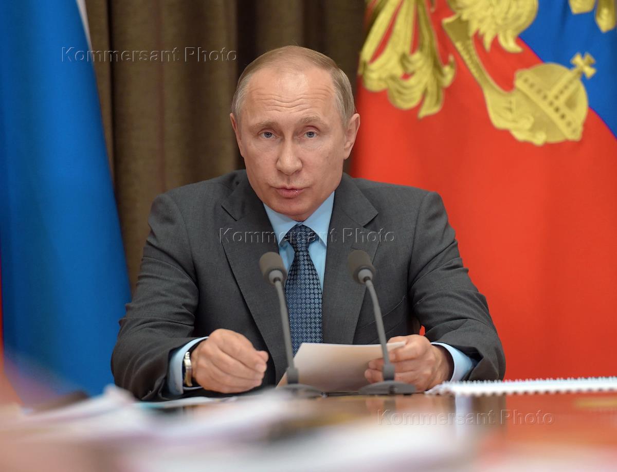 Президент России Владимира Путина на совещании по вопросу развития космической отрасли России в резиденции "Бочаров ручей".