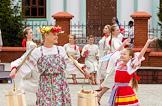 Юбилейный 25-й фестиваль русского фольклора "Каравон" прошел селе Никольское Лаишевского района. Участницы в национальных костюмах во время фотографирования выступающих.