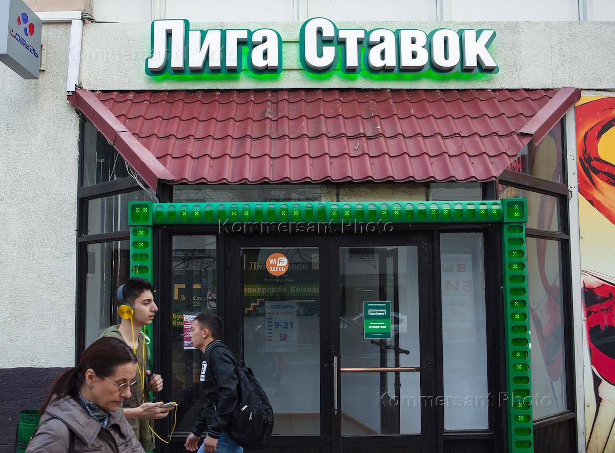 Жанровая фотография. Вывеска букмекерской конторы "Лига ставок".