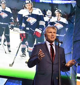 Торжественная церемония закрытия IX сезона континентальной хоккейной лиги (КХЛ) в концертном зале Barvikha Luxury Village. Министр спорта Павел Колобков во время церемонии.