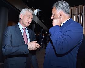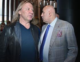Торжественная церемония закрытия IX сезона континентальной хоккейной лиги (КХЛ) в концертном зале Barvikha Luxury Village. Продюсер Иосиф Пригожин (справа) и композитор Виктор Дробыш (слева) перед началом церемонии.
