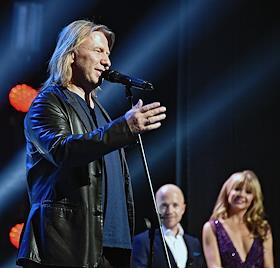Торжественная церемония закрытия IX сезона континентальной хоккейной лиги (КХЛ) в концертном зале Barvikha Luxury Village. Продюсер Иосиф Пригожин (слева) и певица Валерия (справа) во время церемонии.