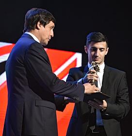 Торжественная церемония закрытия IX сезона континентальной хоккейной лиги (КХЛ) в концертном зале Barvikha Luxury Village. Хоккеист Павел Буре (слева) во время церемонии.
