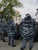Торжественная церемония освящения нового храма Воскресения Христова и Новомучеников и Исповедников Церкви Русской московского Сретенского монастыря. Сотрудники полиции во время церемонии.
