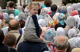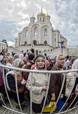 Торжественная церемония освящения нового храма Воскресения Христова и Новомучеников и Исповедников Церкви Русской московского Сретенского монастыря. Верующие во время церемонии.
