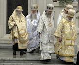Торжественная церемония освящения нового храма Воскресения Христова и Новомучеников и Исповедников Церкви Русской московского Сретенского монастыря. Священнослужители во время церемонии.
