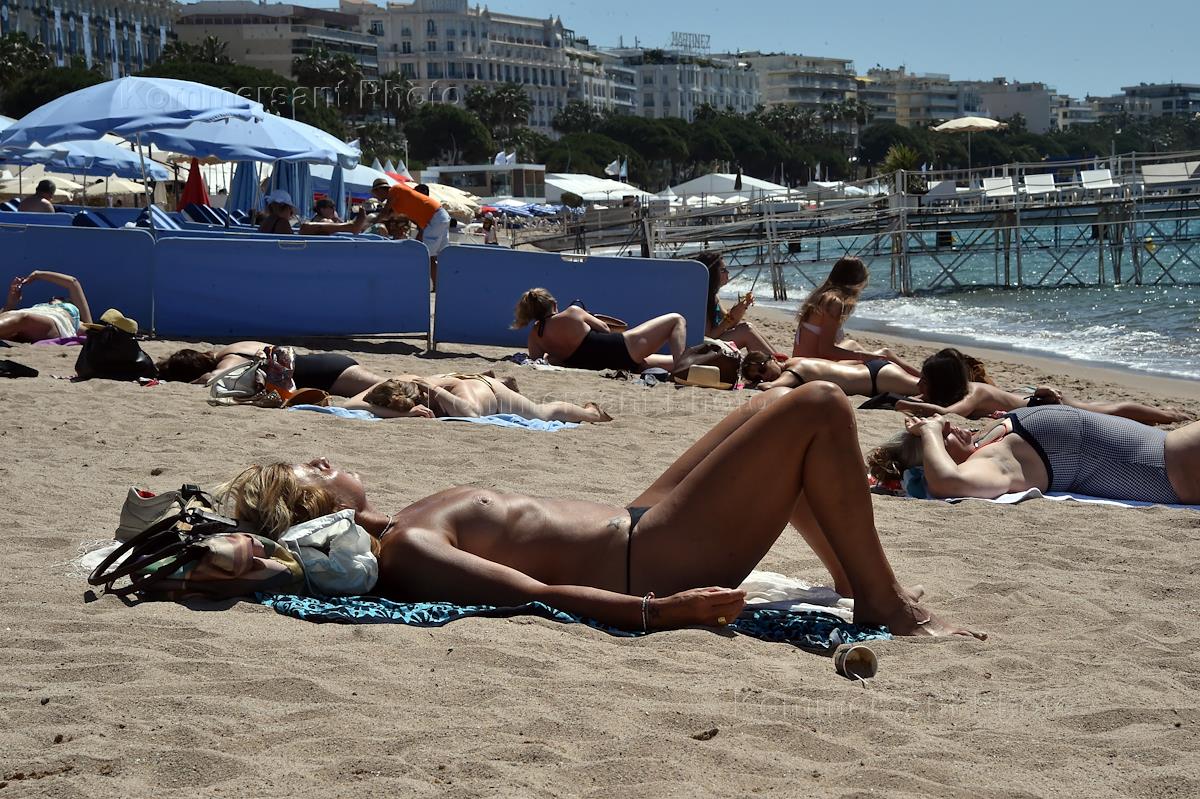 Виды Канн. Отдыхающие на пляже.